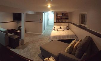 Very clean for being in the basement. Great for the price we got it at! Felt very safe in it's location within a beautiful neighborhood with sidewalks. Walked to the market apx 15 min walk there. There were a TON of LOUD cicadas which was a little eek but I believe that only happens every 17 years? Would of been nice to have a wall separating unit stays instead of just a door. Wasn't sure if someone could come down stairs from the upstairs that wasn't part of our rental. over all though we had a wonderful stay and would highly recommend this place to others. Will definitely be coming back to stay here to visit family in the area again!