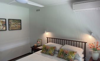 Just 400 meters from local shops, cafes, wine bar, hotel, Farmers Market (2nd Sunday), the Book Town Festival (March) . Enjoy modern amenities, ensuring a comfortable stay. Unwind on the semi-inclosed deck with a wine , or in winter, cozy up to the warmth of the combustion heater. Scenic walks are especially beautiful in autumn