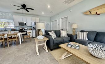 With a split plan layout, our beach house offers the utmost privacy and comfort. Retreat to the primary suite featuring a luxurious king bed and a private bathroom, or choose the second bedroom with two full beds and an attached bathroom accessible from both the bedroom and the main living area.