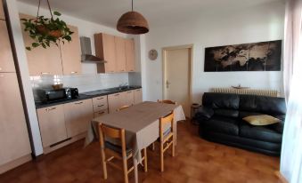 Colico center in front of the bus and train station, 50 meters from the shops and beach. Free parking, tourist tax and cleaning fees included in the cost. Apartment on the second and top floor, no elevator. Equipped kitchen, double bedroom and bedroom with two single beds, possibility of baby bed on request. Free Wi-Fi. Pets are accepted. Large terrace. Air conditioning. Ideal for families and for those who practice sports on the lake.