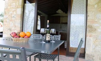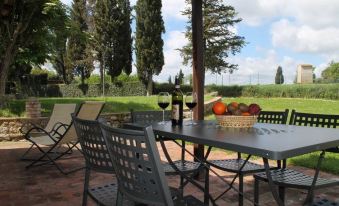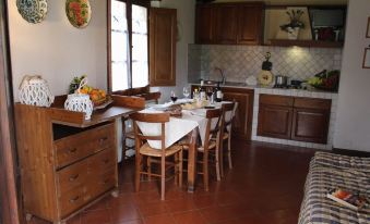 The apartments are furnished in typical Tuscan style with terracotta tile floors, beamed ceilings and fitted kitchens. A park stretches between each apartment, including a beautiful swimming pool (11x8 m), a solarium (10x10 m) and a beautiful lawn shaded by mulberry trees, pines, oaks and cypresses. Next to the pool and the park is a charming restaurant (open on weekends and decorated for wine-olive oil costs as well as cooking classes) with stone walls, a large fireplace and wooden beams. The place is also ideal for weddings, celebrations and parties.