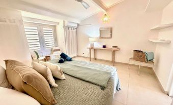 Paradise on the beach" fabulous 2 rooms apartment for a couple or a family of 3 or 4 people it offers a fantastic view of the sea, it is composed of a side entrance, a spacious living room full furnished with a sofa bed daily bed 160 a connected smart TV, wifi, air conditioning and fans, a perfectly equipped kitchen, nothing is missing, a large bedroom nicely furnished with a very comfortable King size bed.