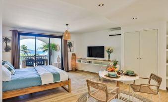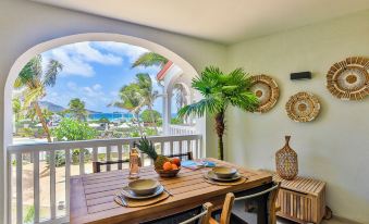 Located in the secure Baie Orientale park, this beautiful fully renovated beachfront apartment offers views of Orient Bay beach, as well as Pinel Island.