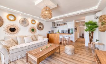 In the heart of the Orient Bay village, located just behind the magnificent white sand beach, the Six View apartment offers you a dream stay in an exotic and refined atmosphere.