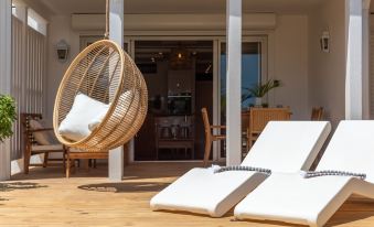 A portal gives you direct access to the most beautiful beach on the island and its famous beach restaurants.