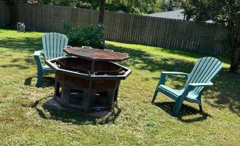 When you're not exploring the nearby attractions, such as the enchanting Santa's Wonderland just 11 minutes away, you can relax by the fire pit or unwind on the comfortable outdoor furniture. With 2 bathrooms, towels, basic soaps, a hair dryer, an iron and board, as well as air conditioning, heating, and linens, you'll have all the essentials for a comfortable and carefree vacation. Don't forget the convenient on-site parking, making it easy to come and go as you please. Experience the perfect blend of comfort and convenience at our charming 4-bedroom vacation home in College Station!About pets:Pets allowed: dogs less than 50 lbs per pet (limit 2 pets total).About children:Children allowed: ages 0-17.About smoking:Smoking allowed: in designated areas.About events:No events allowed.
