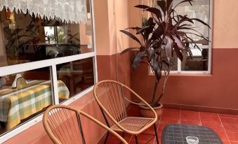 La hostería es impecable, todo ordenado y limpio, se destaca la amabilidad de Matías, quien atiende con excelente humor. Fuimos con mi hermana el finde largo de octubre 23, y disfrutamos que el lugar estuviera a 6 cuadras de las termas, a 6 cuadras de la terminal de onmibus (fuimos en micro) y a 6 cuadras del centro. Además, salís de la hostería y ya ves el río, porque está a una cuadra de la costanera. La habitación es súper prolija, y te brinda el confort necesario para pasar un finde largo sin problemas. Tiene un espacio en el jardín, que es ideal para tomar mates o desayunar mirando el espacio verde. Hay desayuno de cortesía, con sobrecitos de café y otras infusiones, además de cositas dulces para acompañar (medialunas, masitas). Sin dudas, ¡volveremos!