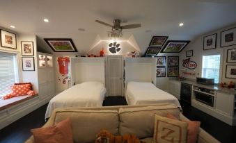I married a Gamecock. I live in Columbia. I can't put any of my cool stuff in our house, so I created an eden I get to go visit twice a month when my kids aren't driving me crazy. For whatever team you cheer for, hopefully you will come visit and appreciate my plight. 5 minutes to downtown, less than 10 to stadium it's the perfect spot if you're looking for a weekend to catch a game, or just come visit this majestic city.About pets:No pets allowed.About checkOut:Check out before 11:00 AM.About children:Children allowed: ages 0-17.About checkIn:Check in after 4:00 PM.About smoking:Smoking is not permitted.About minBookingAge:Minimum age to rent: 25.About events:No events allowed.