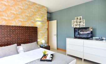 This private villa has 2 double bedrooms: the main bedroom, on the ground floor, has a double bed and a complete bathroom with shower, as well as direct access to the garden and swimming pool; the second bedroom, on the upper floor, has two single beds with another bathroom en suite with shower and direct access to the upper solarium with sunbeds.