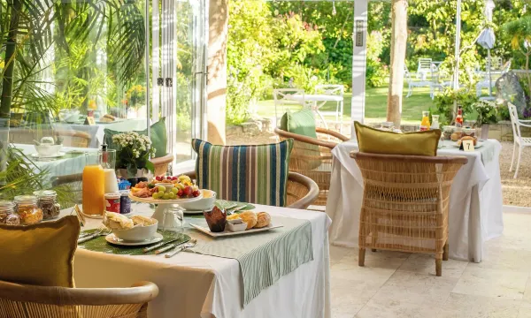 From the minute you arrive to the minute you leave everything and everyone is perfect. Our room (number 4) was enormous. It is basically one very large room with a lounge area and then the bedroom area and then the bathroom with a sliding door so it can be shut off. There are doors opening onto the garden and swimming pool. The staff are extremely friendly and helpful. There is plenty of choice for breakfast with anything cooked freshly prepared. In summary a fantastic place to stay.