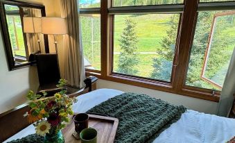 Bedroom One: King bed, panoramic views of the mountain, jetted tub, shower, double sinks (This is our favorite room in all of Copper!)