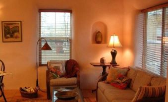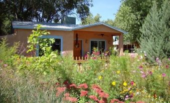 Live the dream and enchantment of Old New Mexico with a getaway to the charming village of Corrales, voted by Money Magazine to be one of America's top 25 small towns. Your home-away-from-home is a cozy casita guest house, newly built in the historic style with beamed viga ceilings, thick stucco-ed walls, kiva fireplace, and many other authentic architectural details.