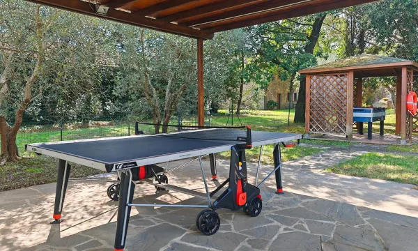 Adjacent to the pool there are table tennis, foosball, children's swing and hydromassage pool ideal for those who want a relaxing holiday. The property also offers barbecue facilities, Wi-Fi.