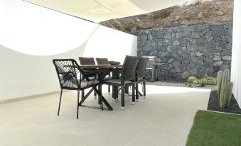 My husband and young kids stayed here over May half term and we had a great time. The villa is beautiful and has everything you need for a comfortable stay. It has a lovely view from the bedrooms and balcony. The pool area is great with plenty of loungers and a cabana/sofa area which offers a bit of shade from the sun. The tiles around the pool are not slippy and the rest is artificial grass so was great for the boys to play on. It does get hot though! The villa is set up hill from the resorts so would need a car to get about, but it’s only a short drive to get to where there are shops, restaurants and bars are or the beach. It’s about 20 minutes from the airport by car too which was great. We would definitely stay here again!