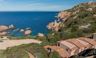 This single apartment overlooks one of the main bays of Costa Paradiso, Le Sorgenti, perhaps the most spectacular in terms of the panorama, the magnificent red rocks that surround it and the crystal clear waters in which to dive. The view from the windows is breathtaking, the apartment has been recently renovated, fully air conditioned, equipped with every comfort and accessory and is directly connected to the access to the sea of "Le Sorgenti" and the small beach of "Li Tamerici" with shallow water perfect for children. The house consists of a very welcoming room with large corner sofa and open kitchen with dining table, a double bedroom with sea view, a second bedroom with two comfortable beds overlooking the internal garden, a bathroom with large shower and washing machine. Many services nearby like bars, restaurats and grouceries shop. Equipped with fast internet connection, SAT TV and a splendid terrace overlooking the sea, this house is the ideal place for a couple's or family holiday or as a location for smart working during mid-season. Also perfect for a winter weekend accompanied by a good book and many walks on the slopes of the Costa Paradiso Territory to capture unforgettable images of its views and dream sunsets.About pets:Pets allowed: dogs and cats less than 22 lbs per pet (limit one pet total).About checkOut:Check out before 11:00 AM.About children:Children allowed: ages 0-17.About checkIn:Check in after 4:00 PM.About smoking:Smoking is not permitted.About minBookingAge:Minimum age to rent: 23.About events:No events allowed.