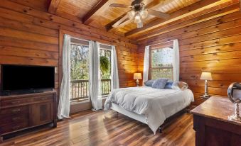 The cabin was very cute. We enjoyed our stay. There were a few things, the ceiling fans were very dirty and the humidifier up stairs leaked and dripped down into the bedroom below. We turned off the humidifier immediately and cleaned up the mess. We contacted Andrew to let him know. The toilet upstairs has a huge crack in the bowl.Other than that we enjoyed it
