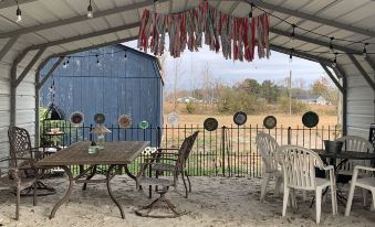 Escape from the city life and come stay at our farmhouse. This unique rental is situated on a little over 5 acres and it is only a couple minutes from the Outer Banks corridor (highway 168). It is such a beautiful home and boasts a fun and relaxing courtyard to enjoy all day and night.
