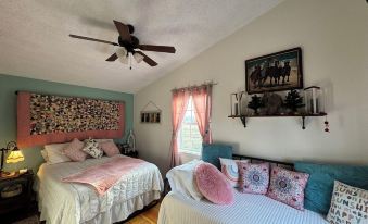 This unique farmhouse has a lot of charm and is decorated in beautiful colors to warm your heart to make you feel relaxed and comfortable. The open concept layout has a large kitchen, family room and sunroom/dining room. From the time you walk in the front door the cathedral ceiling and large sunroom catches your eye and brings you to the beautiful outside courtyard. The home has 2 bedrooms: Bedroom one has a queen bed, daybed with a trundle. Bedroom two has a full bed, daybed with trundle. This home has one full bathroom and another half bathroom in bedroom number two. There is also a washer and dryer in this rental.