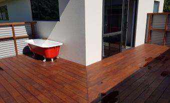 Comprising two bedrooms, (plus bed in garage) full kitchen, with laundry and wet floor shower, Bellhaven is fully wheelchair accessible with ramps onto kwila decks.