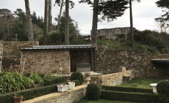 The nearest airport is Brest Bretagne Airport, just about 55 mins from hotel by car (60.9 km) away.Which airport is closest to Single-storey house 125 m² facing the sea, patio with barbecue and garden.?