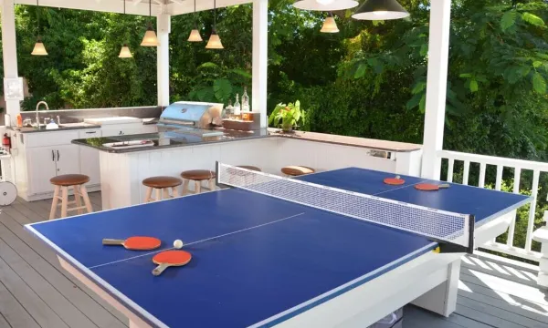 - Billiard porch with full sized, single-piece slate pool table, spectacular ocean views, and a table tennis top