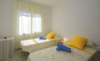 Beautiful, comfortable apartment block, 3 storeys. In a sunny position, 5 m from the sea, 5 m from the beach, road to cross. For shared use: property (fenced), swimming pool angular (20 x 5 m, depth 160 - 220 cm, seasonal availability: 01.Jan. - 31.Dec.). Children's pool, outdoor shower. Shop 110 m, supermarket 180 m, restaurant, bar 15 m, bus stop 700 m, railway station "Segur de Calafell" 1.1 km. Nearby attractions: Sitges 19 km, Barcelona 63 km, Tarragona 40 km, Port Aventura 52 km. Please note: no lift. The owner does not accept any youth groups. Neighbourhood highly sensitive to noise. Quietness and good behaviour expected. "Costa Playa", 4-room apartment 83 m2 on 3rd floor. Practical and comfortable furnishings: living/dining room with dining table and digital TV. Exit to the balcony. 1 room with 1 french bed (150 cm, length 190 cm). 1 room with 1 french bed (135 cm, length 190 cm). 1 room with 2 beds (90 cm, length 190 cm). Kitchen (4 hot plates, oven, microwave). Shower/WC, sep. WC. No heating option. Balcony. Balcony furniture. Marvellous view of the sea. Facilities: washing machine, iron, children's high chair, baby cot for up to 2 year olds, hair dryer. Internet (WiFi, free). HUTT-047790 // Reg. Nr.: ESFCTU000043026000019823000000000000000000HUTT0477908