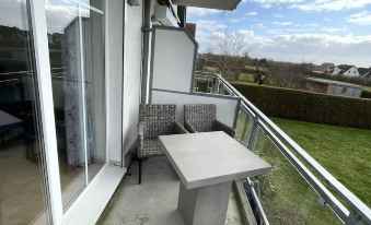 New at FEWO! Apartment Ostseeblau in Barendorf, a small idyllic place for a very relaxing vacation! You enjoy your vacation in a very quiet and well-kept apartment house, surrounded by pure nature. The FEWO Ostseeblau is on the 1st Floor and offers sea views! The beach is about 600m away. The FEWO Ostseeblau is very nicely divided: a very bright and friendly living and dining area with a very comfortable sofa bed, TV, radio with CD and other connections, a fully equipped kitchen, of course with a dishwasher, refrigerator, stove with oven and ceramic hob.