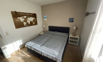 Schöne Ferienwohnung, unkomplizierter Check-In, sowie netter Kontakt zu den Verietern Der Weg zum Strand ist fussläufig ca. 10-15min. Es gibt in der Ferienwohnung einen Bollerwagen. Schöne Terasse, gut abgeschottet mit grün.Kleiner Hinweis: Auf der Webseite stand Check in 14 Uhr, es ist aber erst 15 Uhr möglich; Es gibt viele Mücken und leider keine Fliegengitter in den Schlafräumen, also darauf vorbereiten. Im Kinderzimmer ist bei dem oberen Bett der Abstand Matratze zur Abgrenzung gering, also nichts für unruhige Kids, aber unten können auch zwei schlafen.