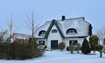 Our lovingly furnished apartment is located on the ground floor of a thatched cottage with a total of 4 apartments. The apartment has 63 sqm, a beautiful terrace and a small garden. Since it is a thatched roof house, outdoor grilling is limited. In addition, you will find an additional bench in the beautiful morning sun, sleeps 5, two in a bedroom with a box spring (180x200cm), two in a small room with 2 single beds and the sofa in the living room has a sleeping area of 200x100cm. In the modern shower room with 2 hand basins is a washing machine. The well-equipped kitchen has a dishwasher, coffee maker, kettle, toaster, egg cooker, microwave, stove and oven. The living room invites you to linger, while a stereo, DVD player and a flat screen TV and a small library can help. The quiet apartment invites you to relax and unwind after a long walk on the beach. On request, we provide you with bed linen and towels.