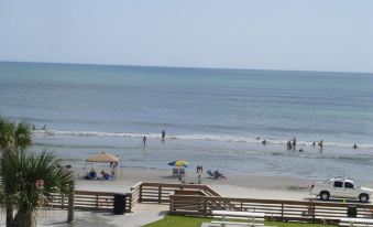On the beach, chairs, umbrellas, floats, bicycles, and four wheelers are all available for rent. A parking pass is provided for on-site parking with additional parking available across the street. Sun Splash public park is located next door. There are two restaurants 2 blocks from us beach side. One is Land Shark Bar and Grill with a Key West feel and the other is Crabbie's Oceanside offering seafood. Our building is a little over half mile (7 blocks) from the Main Street fishing pier which has Joe‘s Crab Shack Restaurant, Daytona Beach Boardwalk, arcade, shops, and clubs. The Ocean Walk Entertainment Complex with movie theater, restaurants, open air concerts at The Bandshell & much more is 2 blocks farther.