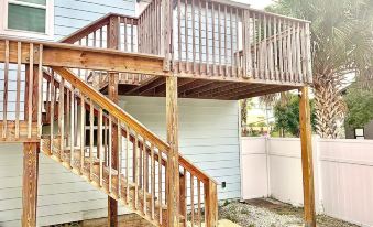 We stayed in this apartment while our child was competing in an event at the Ocean Center. This cute house is across the street and an easy walk to the beach and restaurants. Far enough away from the rowdy biker areas. Apartment is clean, newly renovated, and the host was responsive and kind. Rooms and beds are very small if that matters. Great choice for our family over expensive nearby hotels.