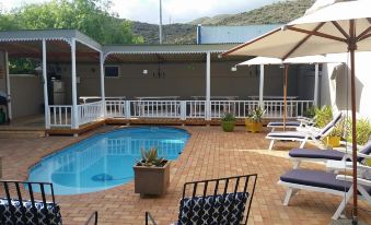 Location & Surroundings: The guest house is centrally located in De Rust, a small town with walking access to shops, restaurants, and attractions like Meiringspoort waterfall. The tranquil garden, communal pool, and braai area offer relaxation and scenic views.