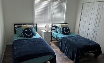 2 bedrooms: 2 single beds and 1 queen bed