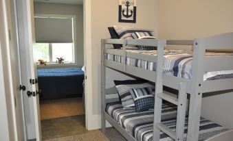 5 bedrooms: 2 bunk beds 2 queen beds and 2 king beds