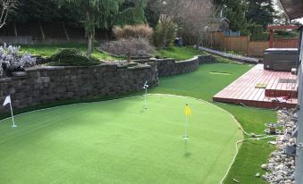 The nearest airport is Vancouver International Airport, just about 28 mins from hotel by car (27.2 km) away.Which airport is closest to Newer Nifty Fifties large 2 bedroom with hot tub and putting green!?