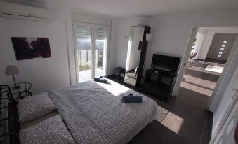 The nearby rocky beach, especially popular with divers, is only 2.4 km away and can be reached by car in 4 minutes. The sandy beach is 5.4 km away, about a 9-minute drive (according to Google Maps).