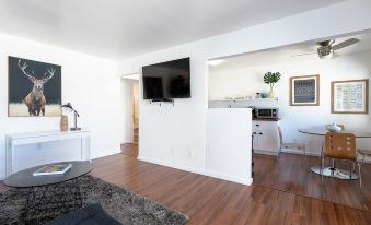 Remodeled in 2016 this one bedroom one bath apartment offers clean, chic, and modern accommodations. The décor is simple and functional. Fully equipped and stocked with all basic essentials. Kitchen has new full size appliances perfect place to prepare a simple home cooked meal. Modern concrete tiled shower. King size bed in bedroom. Nice views of surrounding mountains from patio. Living room has a sofa, desk, and 50 inch smart tv.