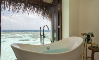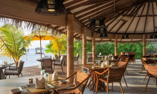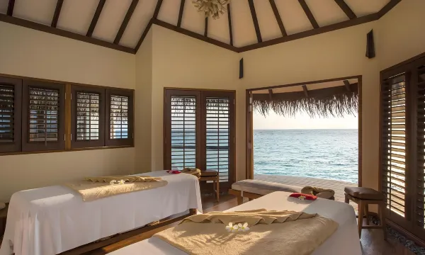 A perfect 7 days in paradise. Over water villas roomy with large decking area with steps down to Indian Ocean. Room boys visit twice a day keeping everywhere clean and tidy replenishing towels and mini bar and freebottled water. Restaurant and bar serving excellent selection of food and drinks. Tuna was the best I've eaten. All staff were welcoming and happy smiling faces a delight to see. As you can tell we loved our stay and will definitely be back. Don't change a thing.