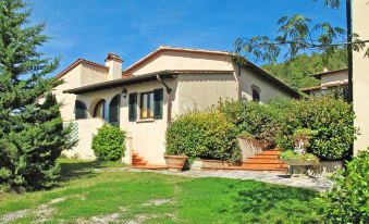 Rustic on a vinyard agricultural estate "Vigna La Corte", 2 storeys, detached from the 16th century, surrounded by trees, meadows and fields. 3 houses in the residence. 13 apartments in the residence. 2 km from the centre of Dicomano, 7.2 km from the centre of Vicchio, 45 km from the centre of Firenze, in a secluded, elevated position on a slope. For shared use: property 60 ha with plants and trees, meadow, swimming pool (16 x 8 m, depth 140 cm, seasonal availability: 01.May. - 01.Oct.). Outdoor shower, table tennis, arbour, terrace, garden furniture, barbecue. In the complex: reception, WiFi, table football, washing machine (for shared use), heating available only from 15.Nov. - 15.Apr.. Motor access (500 m via unmade road). Roofed, parking on the premises. Supermarket 2 km, restaurant 2 km, bus stop 900 m, railway station "Dicomano" 2 km. Nearby attractions: Autodromo Internazionale del Mugello 25 km, Outlet Barberino del Mugello 35 km. On the estate animal husbandry. Local sale of farm products. Please note: railway line 1 km from the property. "Speranza", 3-room semi-detached house 80 m2. Practical and wooden furniture furnishings: living/sleeping room with 1 sofabed, open-hearth fireplace, dining table and satellite TV. 1 double bedroom. Exit to the terrace. 1 room with 1 bed (80 cm), 1 double bed. Kitchenette (4 gas rings, toaster, electric coffee machine). Shower/bidet/WC. Gas heating. Terrace roofed, patio, garden 50 m2. Deck chairs (2). Beautiful view of the countryside. Facilities: children's high chair, baby cot for up to 2 year olds. Internet (WiFi, free). Parking (1 car). Please note: non-smokers only. Maximum 2 pets/ dogs allowed. No mandatory extra charges to be paid on-site except for local tax. IT048013B55KOUJAQS