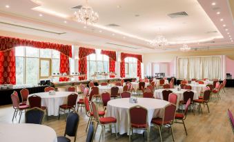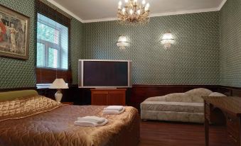 The hotel has a green courtyard, a terrace (veranda), a playground, a picnic area, a guarded territory, a private beach, wi-fi Internet, 24-hour reception, a restaurant, a sauna/sauna, a guarded fenced yard. At guests' disposal: more than 40 event venues, more than 33 hectares of green, well-groomed territory, a spring lake.