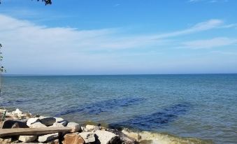 Our Lake is perfect for kayaks, wind surfing, sailing, boogie boarding, and fishing. This property is set on 1.5 acres , 200 ft of waterfront just 10 yards from water, with lots of parking, two fire pits, and a lot of seating to enjoy the outdoors. This cottage is complete with private beach, free wifi, 55" flatscreen and magnificent view with gorgeous sunrises as far as the eye can see.