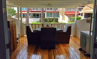 The villa is literally around 100 feet from the beach where you can relax by using some of the lounge chairs provided by the Embassy Suites next door or bring the ones that are provided in the villa. The complex has a kids and a regular size pool. It also has a nice playground if you are traveling with small children. There is security 24/7 in the complex. There are multiple restaurants within a 5-10 minute drive from the villa. There is also a shopping area right outside the community where you can find a grocery store, pharmacies (CVS, Walgreens), fast food, etc.
