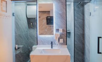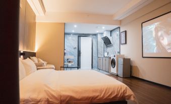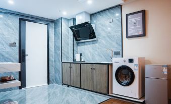 房間挺新的,有個洗衣機,很方便,把臟衣服都洗了,洗衣機很新,很乾凈,一次性浴巾洗臉巾,體驗比較好,在融創斜對面,樓下附近吃飯購物比較方便,貌似沒有前台,過去打電話,服務人員幫忙寄存物品,開房間。還不錯,推薦~