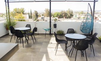 Rooftop tables and chairs . Great spot , easy to get into Durango.