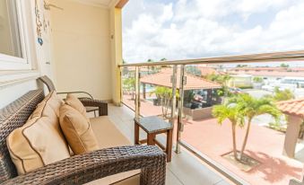 A very large corner unit, very quiet. Well appointed with very comfy mattresses. Loved using the pool and BBQ at the Pearl.