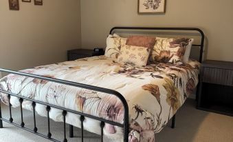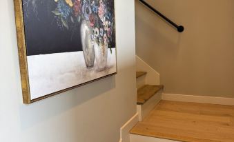 - **First Floor**: A cozy bedroom with a queen bed, chic decor, and personal storage, perfect for unwinding after your journeys.