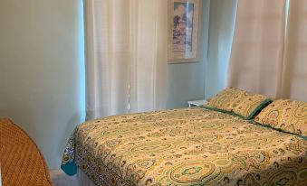 The house was perfectly equipped for our party of the two of us and our overnight guests. The queen beds are comfortable. Standing on the beach or kayaking I saw turtles and rays. A pelican flew by regularly. The umbrella and lounge chairs were comfortable and the screened porch the perfect place to hang out. We hope to come back.