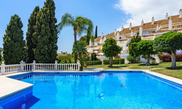 El paraiso Alto: Apartment block "El paraiso de Estepona", 3 storeys, semi-detached. In the district of El Paraiso, in a quiet, sunny position, 5 km from the sea, 5.4 km from the beach. For shared use: swimming pool (20 x 10 m, seasonal availability: 01.Jan. - 31.Dec. pool opening hours: 09:00-22:00) with internal staircase. Children's pool, outdoor shower, parking at the house. Grocery 900 m, supermarket 3 km, restaurant 100 km, bus stop "Isdabe" 2.5 km, sandy beach 5 km. Golf course (18 hole) 900 m. Please note: car recommended. The owner does not accept any youth groups. Neighbourhood highly sensitive to noise. Quietness and good behaviour expected. "El paraiso de Estepona", 5-room apartment 177 m2 on 3 levels. Comfortable and beautiful furnishings: open living/dining room with digital TV, air conditioning and forced-air heating. Exit to the terrace. 1 room with 1 pull-out bed (2 pers. 2 x 90 cm, length 200 cm), air conditioning and forced-air heating. 1 room with 1 french bed (150 cm, length 200 cm). Open kitchen (oven, dishwasher, 4 ceramic glass hob hotplates, toaster, microwave, freezer, electric coffee machine, Capsules for coffee machine (Nespresso not incl.) extra). On the lower ground floor: entrance hall. 1 room with 1 french bed (150 cm, length 200 cm). Shower/WC. Air-conditioning, forced-air heating. Upper floor: 37 m2, 1 open room with 1 french bed (150 cm, length 200 cm), shower/WC (private). Terrace 22 m2, terrace 15 m2. Terrace furniture. Very beautiful panoramic view of the sea and the resort. Facilities: washing machine, iron, children's high chair, baby cot for up to 3 year olds, hair dryer. Internet (WiFi, free). VUT/MA/59284