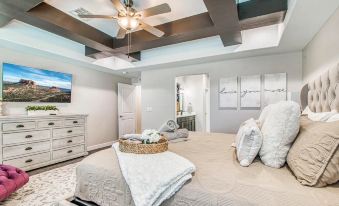 Welcome to our 4 bedroom, Newly built Luxurious home. Such a breathtaking home when you enter. A perfect place to relax, enjoy, and unwind after a long trip. During your stay, you get to enjoy the heated pool, indoor fireplace, and open concept kitchen to the living room for that perfect gathering with family. This gem is within driving distance to many populated restaurants, bars, cafes, a bowling alley, and a lot of other good places to visit. SE HABLA ESPANOL!!