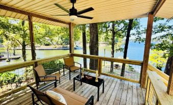 Very sweet home on the lake. There is a beautiful view from most rooms in the house. The out door patio and deck area are amazing. The house is fully stocked with everything you could need. I appreciated the nice cookware. The house was very clean and smelled great upon arrival. My only suggestion is the beds are very firm. They could use a topper for comfort. The master bedroom is absolutely beautiful. We will be back for sure!